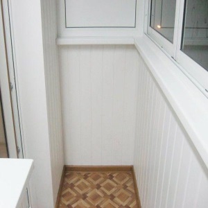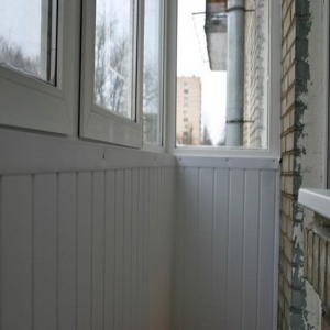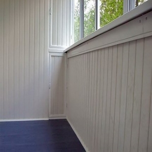 Пластиковая вагонка шириной 10см. применяется для внутренних отделочных работах на балконе. Пластиковые панели ПВХ не выгорают на солнце, стойки к влаге и не поддаются коррозии, срок службы более 10 лет.